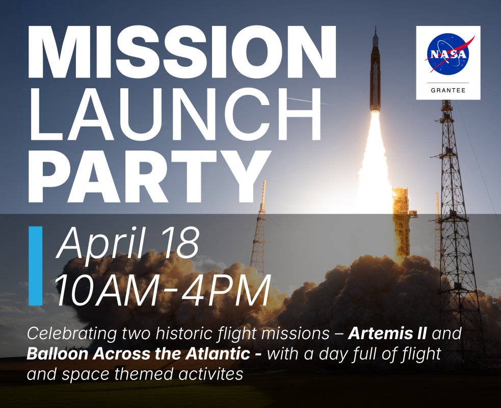 Celebrate two historic flight missions – Artemis II, the first trip around the Moon since 1972, and Balloon Across the Atlantic, a world record hydrogen gas-filled balloon flight across the Atlantic Ocean.