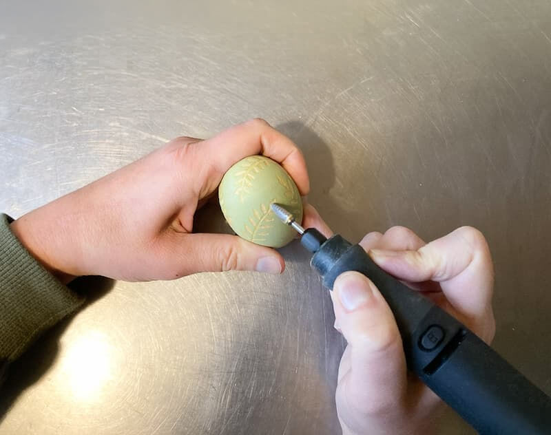 Use handheld rotary engraving tools to engrave a unique design on your wooden egg, then use oil pastels to add splashes of color!